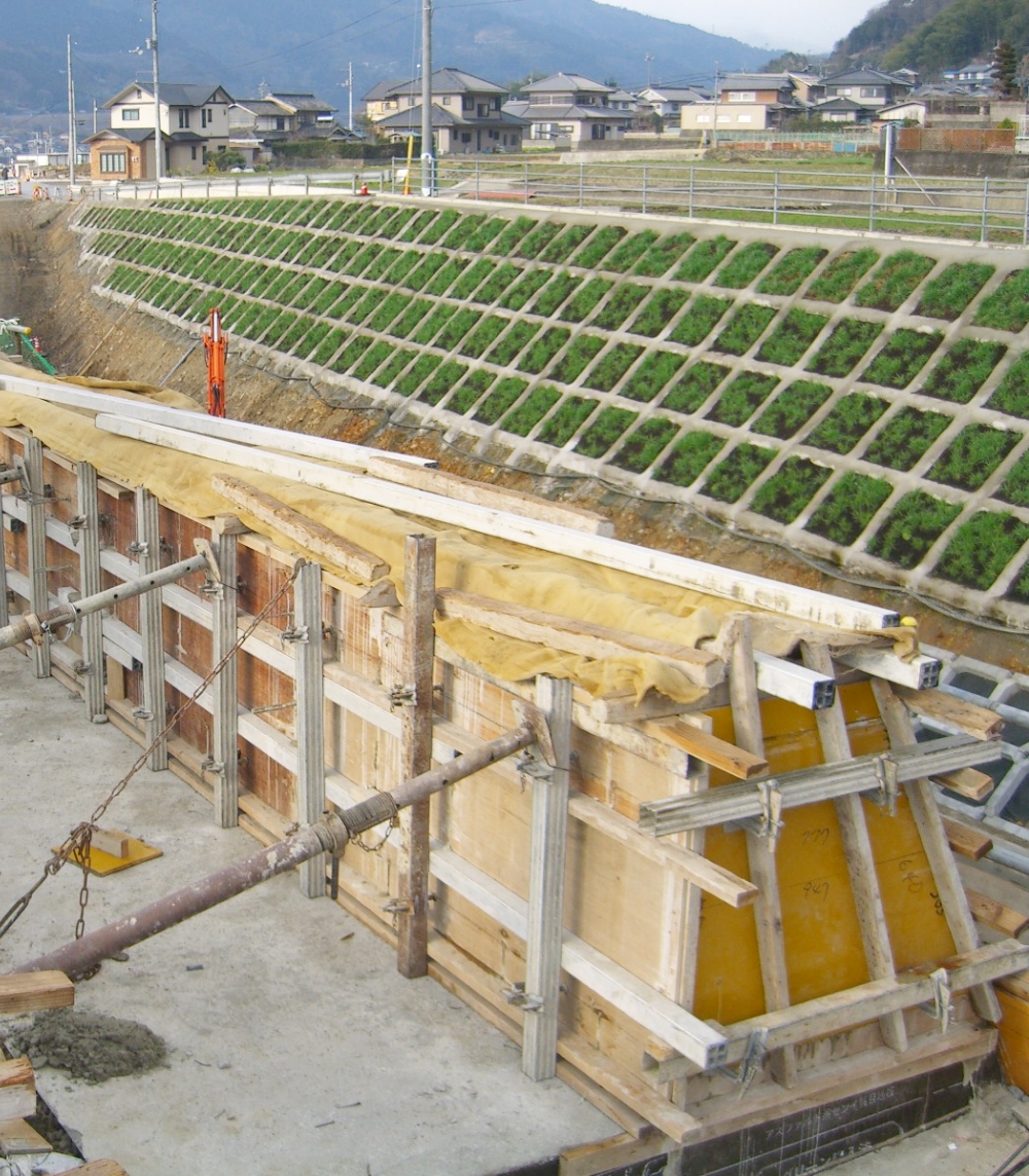 土を支える擁壁や、道路下の水路となる函渠、河川の浸食を防ぐ護岸など、具体的な機能を持つ施設を造る工程です。土工やコンクリート工と連携し、インフラとしての役割を形にすることで、地域の安全と利便性を支えます。